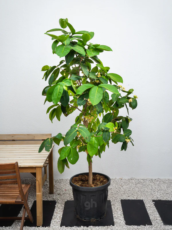The Jamrul, also known as Syzygium Samarangense, is a tropical fruit tree that belongs to the Myrtaceae family. It is native to Southeast Asia and is widely cultivated in tropical regions around the world. The tree can grow up to 1.5 meters in height and has a dense, bushy canopy with glossy, dark green leaves. The Water Apple produces small, round fruit that is about the size of a tennis ball. The fruit has a thin, waxy skin that can be red, pink, or white in color, and a crisp, juicy flesh that is sweet and slightly tart. The fruit is commonly eaten fresh or used in jams, jellies, and other desserts. The Water Apple tree is easy to grow and requires full sun and well-drained soil. It is also tolerant of salt spray and can be grown near the coast. The tree is highly valued for its ornamental qualities, as well as its delicious fruit. It is often planted for landscaping purposes in tropical areas.